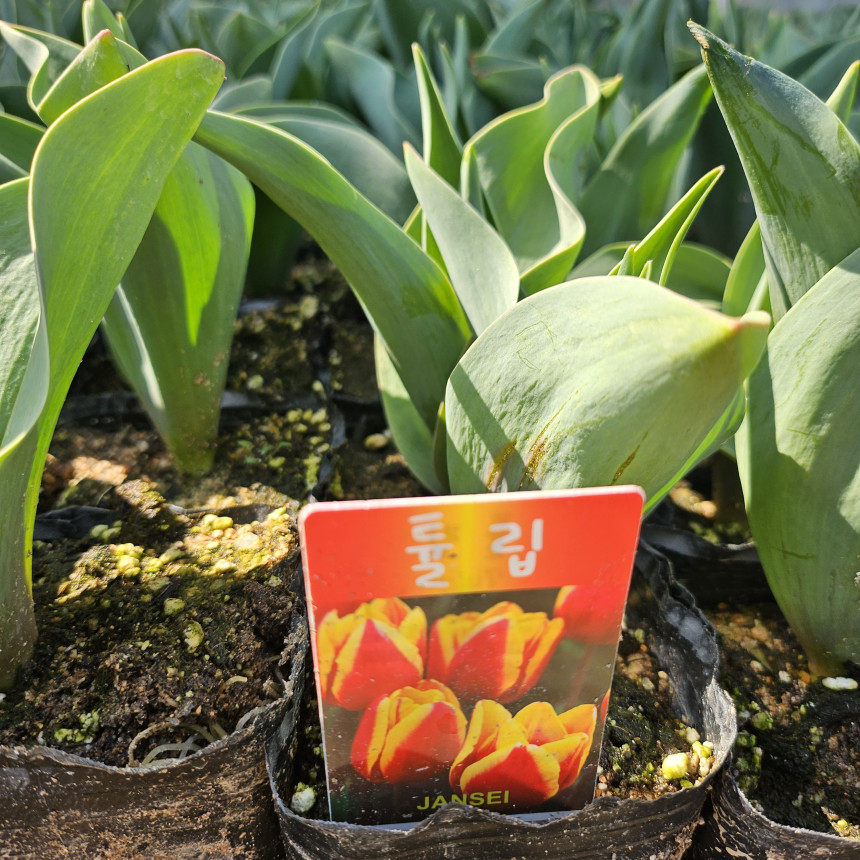 8cm 비닐포트에 심어진 튤립모종의 크기는 약 20cm 정도 돼요~