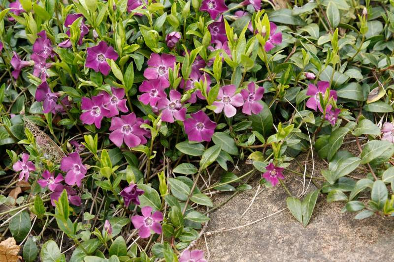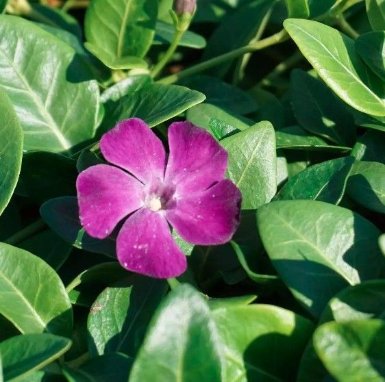 빈카 ‘아트로퍼퓨레아’는 짙은 녹색잎으로 버건디(와인색)색의 꽃이 핍니다.