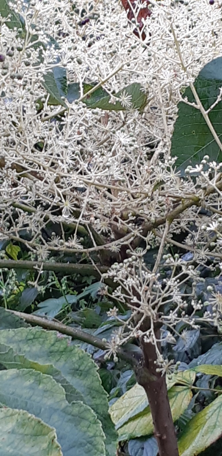 9월경에 두릅나무 줄기의 끝에서 두릅나무 꽃이 하얗게 피는 것을 볼 수 있습니다.