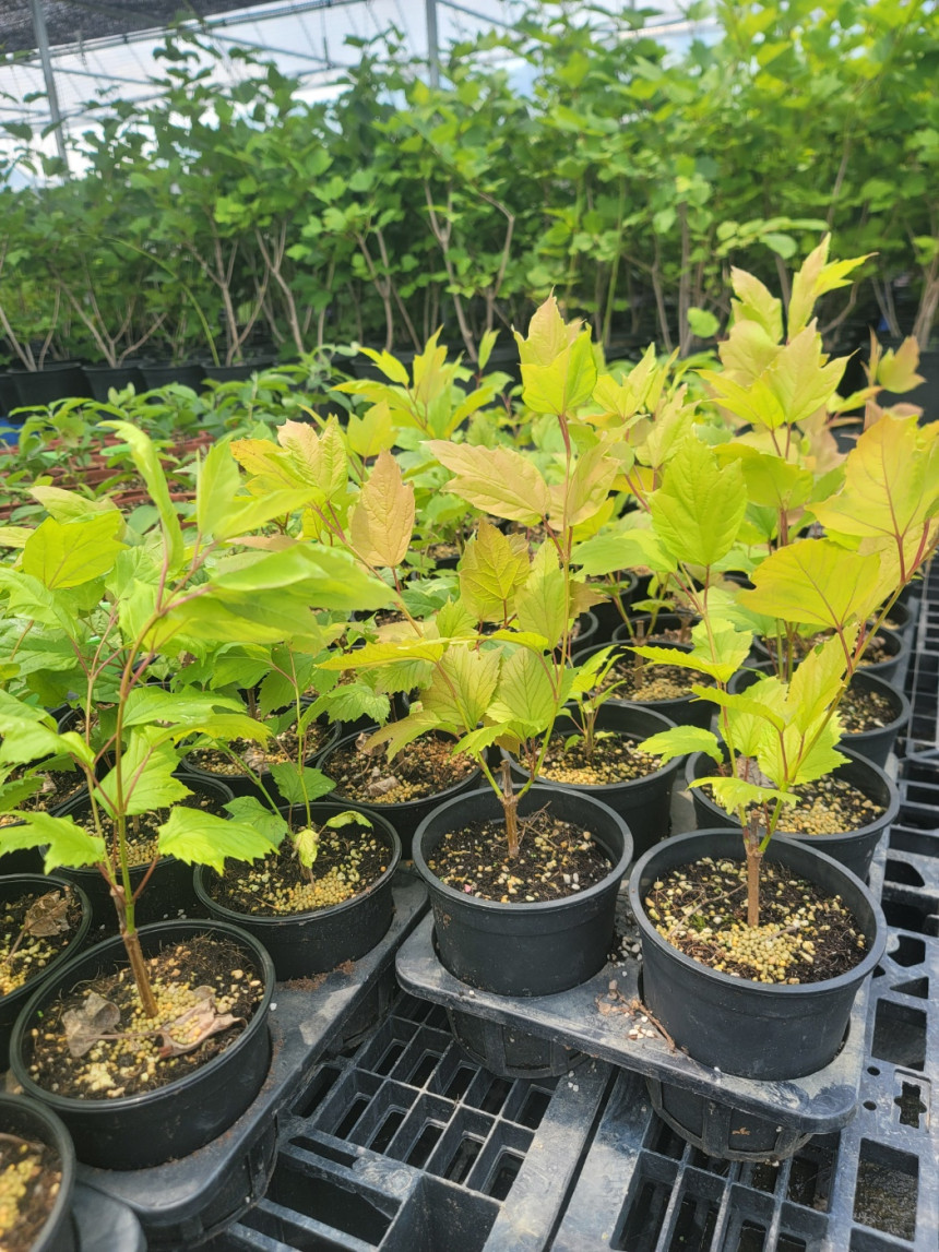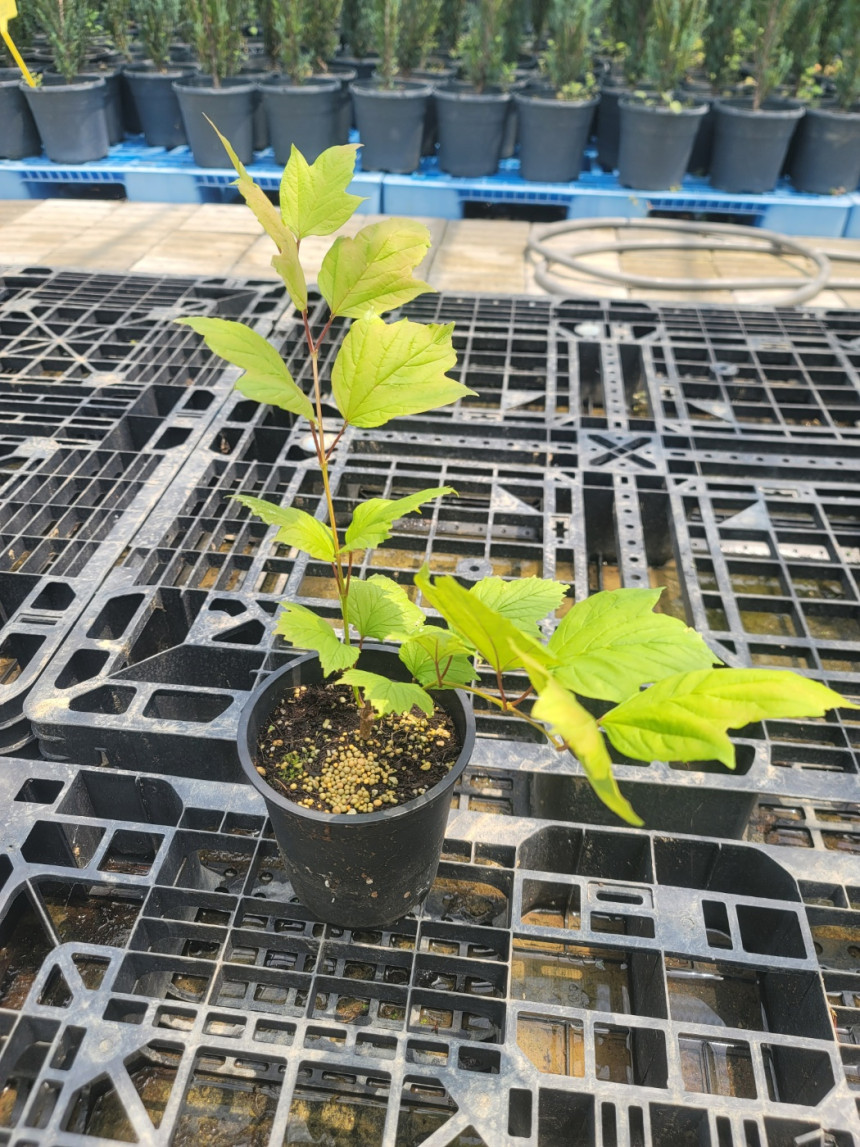 ● 높이와 폭 모두 약 2~4m까지 자라며 잎은 단풍잎처럼 손바닥 모양의 잎으로, 약간 톱니 가장자리를 가집니다.여름에는 짙은 녹색이지만, 가을이 되면 붉은빛 또는 노란빛으로 단풍이 듭니다.